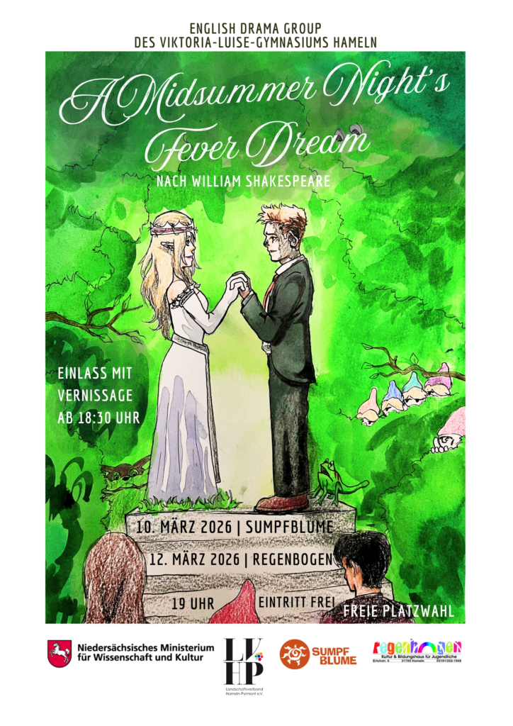 🖼️ Ab 18:30 Uhr lädt der Leistungskurs Englisch Jg.13 von Frau Ziemann-Spanielan beiden Abenden zu einer Ausstellung zum Thema A Midsummer Night’s Dream ein – kommt vorbei und stimmt euch auf den Theaterabend ein!